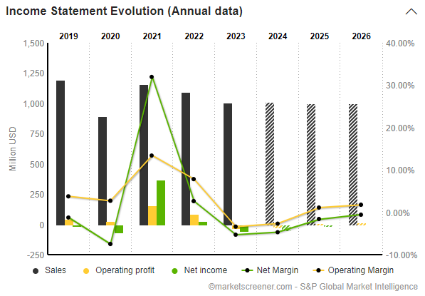 - Net income is anticipated to be a loss of USD 23 million, showing improvement.