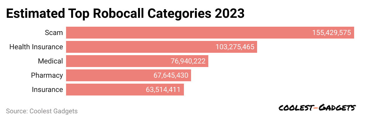 - Scams are a leading robocall category, contributing, on average, 155,429,575 calls, followed by health insurance at 103,275,465.