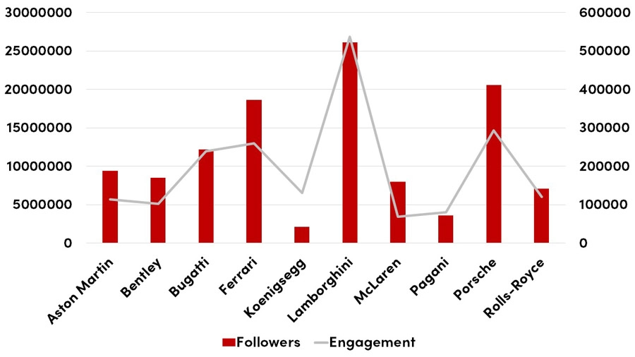 - Instagram is experiencing rapid growth among luxury car brands, particularly Lamborghini, Porsche, and Ferrari.
