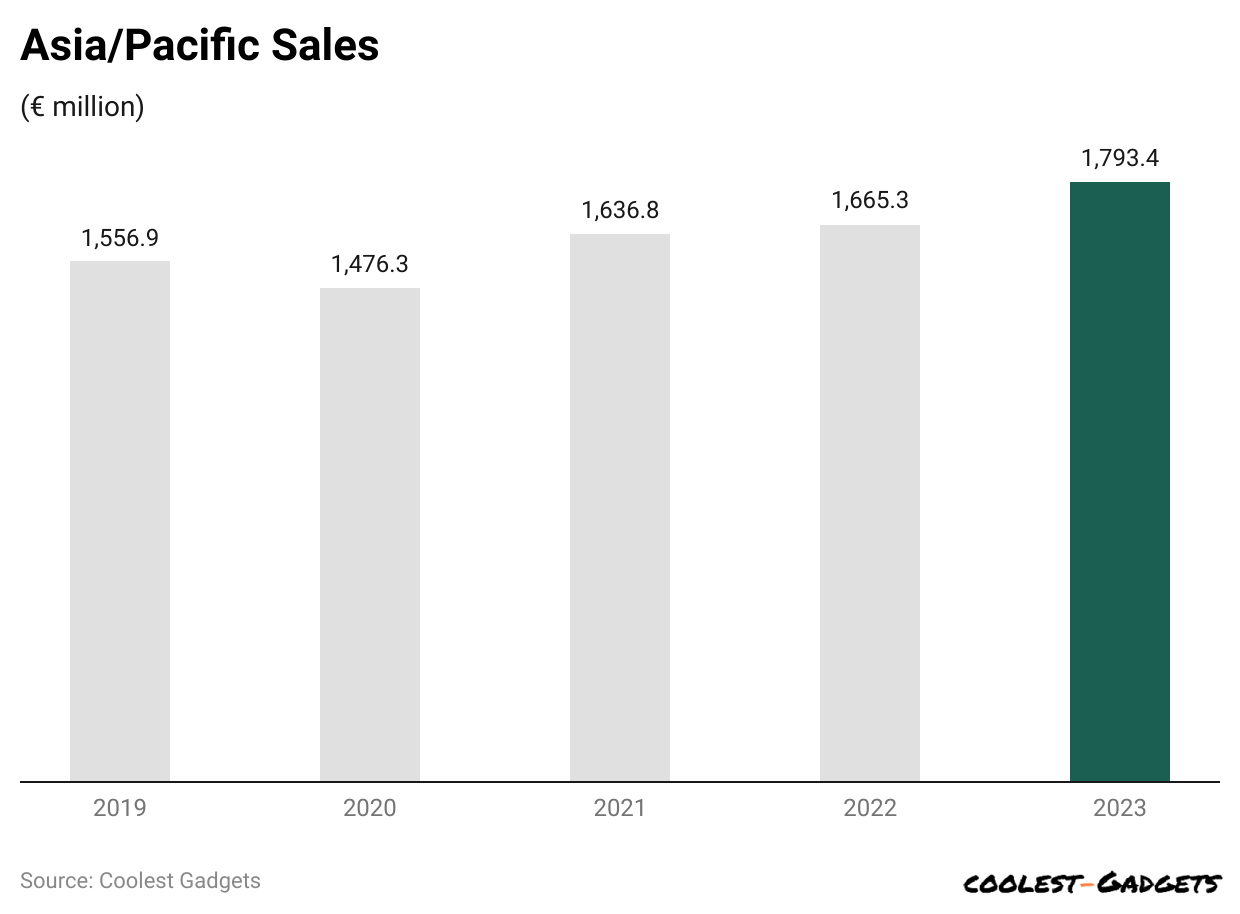 - In the Asia/Pacific region, sales in euros increased by 7.7% to USD 1,793.4 million in the fiscal year.